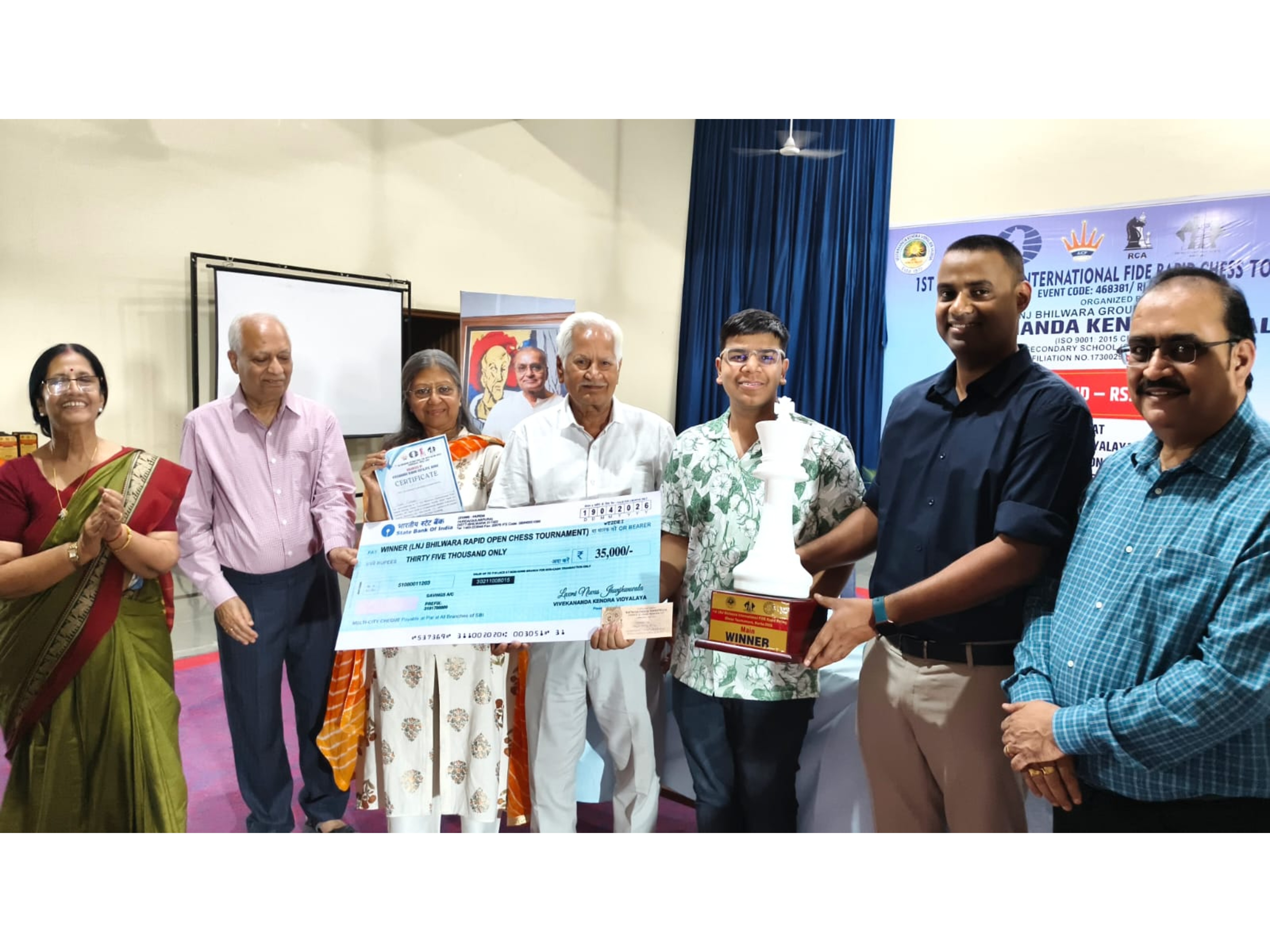 Vivekananda Kendra Vidyalaya (VKV), Hurda proudly hosted its first-ever International Chess Tournament under the aegis of the LNJ Bhilwara Group, with over 200 participants. The program commenced with the grand inaugural ceremony, graced by dignitaries like Smt. Shashi Agarwal, Shri Anil Batra, Shri Naresh Bahedia, and DSP Jitendra Singh. Following the inauguration, an address of respected LNJ Babuji was played, blessing and inspiring all the players. The event honored the legacy of founder Shri L.N. Jhunjhunwala, who established VKV Hurda in 1977 to promote quality education in rural Rajasthan. With a prize pool of ₹2 lakhs, the tournament strengthened Bhilwara’s identity as an emerging chess hub and promoted strategic thinking among students. SP Bhilwara Shri Dharmendra Singh attended the award ceremony, and Principal Asha Goyal along with the staff were appreciated for their excellent organization.
