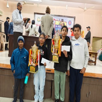 Alokik Maheshwari and Aaradhya Upadhyay participated in the State Amateur Chess Championship 2026. They competed in the 1700 category and 2300 Girls category,respectively. Both players won a cash prize of ₹5,100 and trophy each for their outstanding performance.They will now represent Rajasthan at the National Level. With this, Vivekananda Kendra Vidyalaya, Hurda now proudly has 11 FIDE-rated players.
